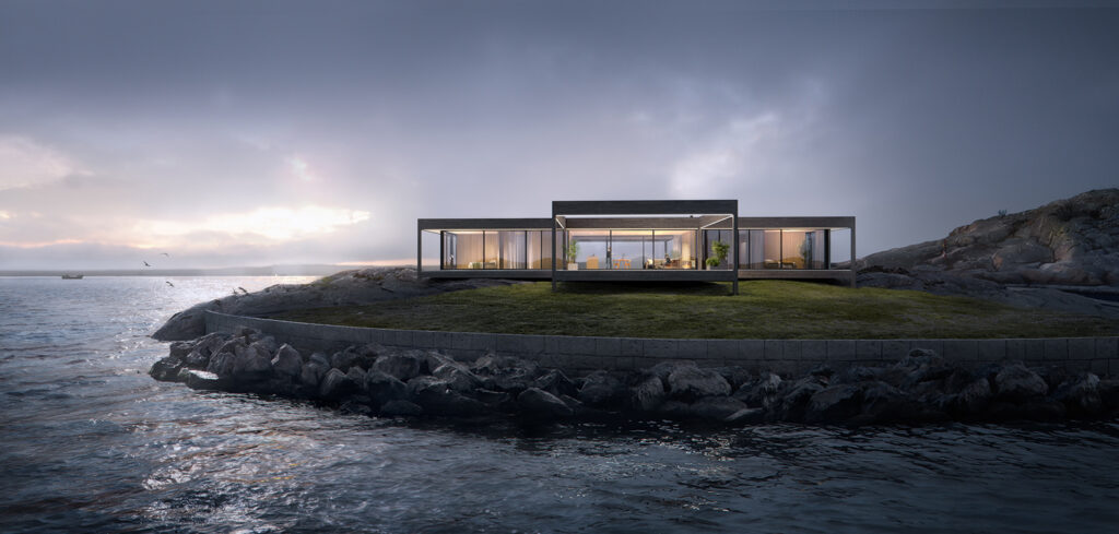 Abundant 360-degree experience of nature in the shape of a weekend retreat on the Swedish west coast. Large rooms for gathering both inside and outside. The burnt wood on the outside will last a lifetime.